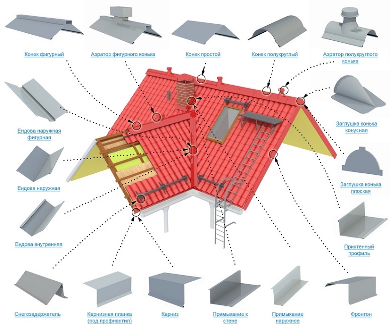 Для черепицы обычно выбирают круглые изделия, для профлиста – плоские. Надо чтобы они полностью перекрывали откос, исключали вероятность попадания внутрь мусора или осадков.